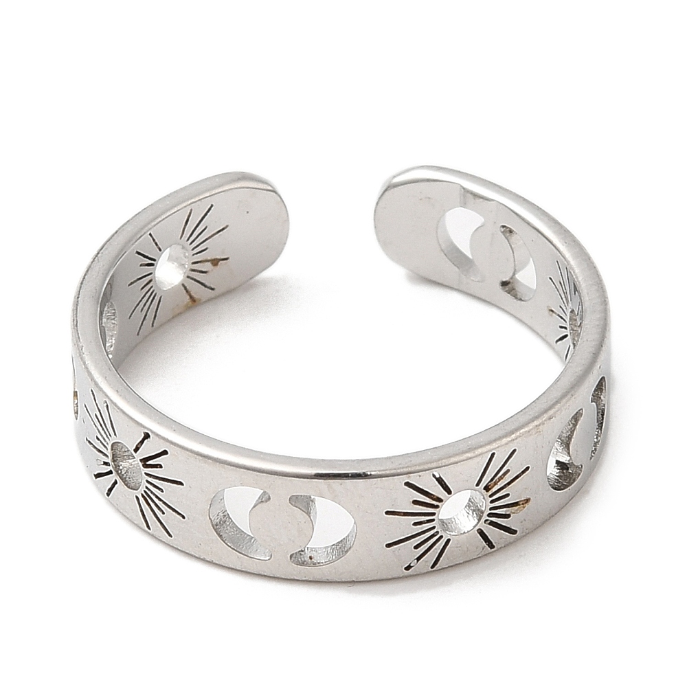 Δαχτυλίδι ατσάλινο ήλιος και φεγγάρια(RJEW-K245-55P)