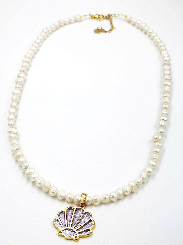 Κολιέ με επίχρυσο κοχύλι και μαργαριτάρια (ns23_52)