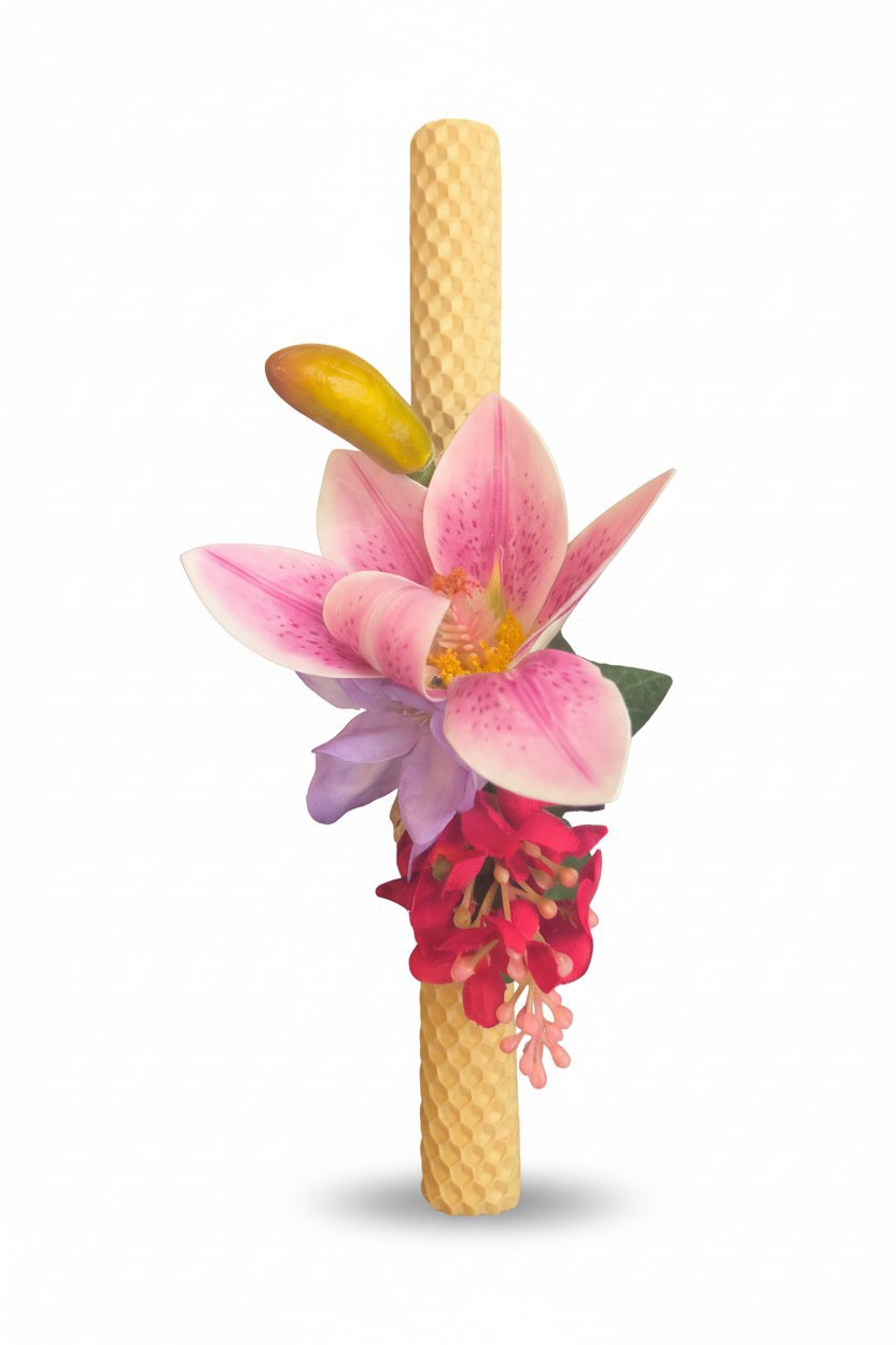 Πασχαλινή Λαμπάδα από Φυσικό Μελισσοκέρι με Φλοραλ Διακόσμηση(lbfl_2)
