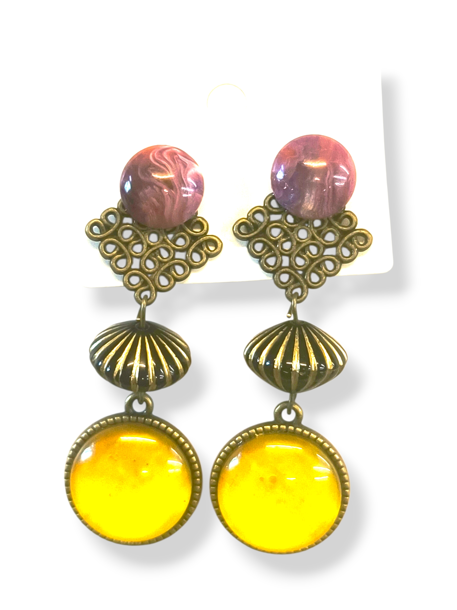 Χειροποίητα σκουλαρίκια με vintage αισθητική σε αντικέ μπρονζέ απόχρωση. Κούμπωμα από ανοξείδωτο ατσάλι και μοναδικούς συνδυασμούς χρωμάτων