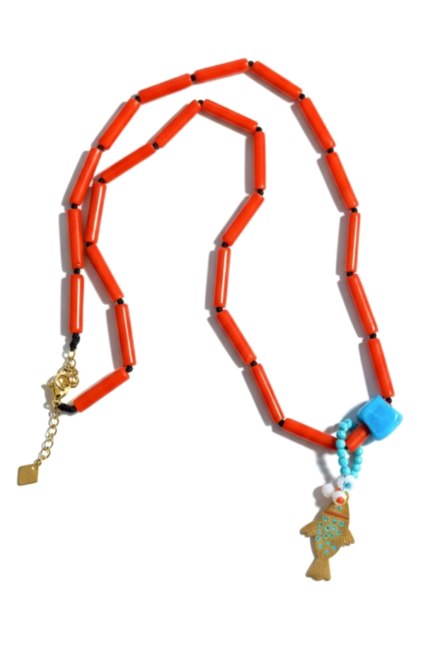 Χειροποίητο κολιέ με γυάλινες χάντρες σε ζωηρά χρώματα και αποσπώμενο ατσάλινο charm. Ιδανικό για μοναδικές εμφανίσεις ή DIY συνδυασμούς.