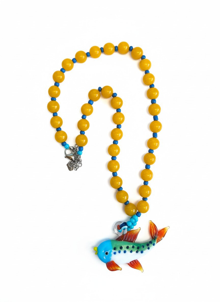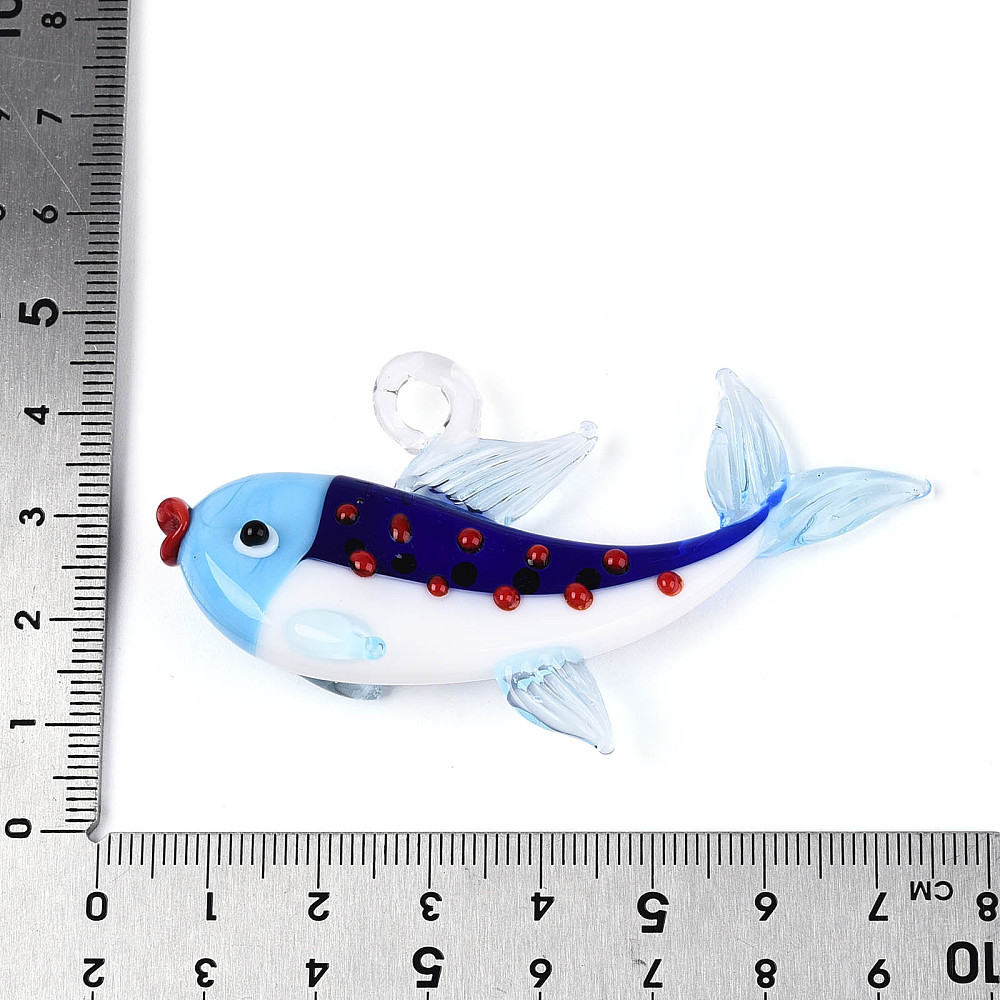 Εντυπωσιακό χειροποίητο κρεμαστό ψάρι από γυαλί τύπου Μουράνο  Ιδανικό για κοσμήματα, γούρια και DIY δημιουργίες. Διαθέτει καλλιτεχνικό design και οπή για εύκολη τοποθέτηση σε αλυσίδες ή κορδόνια.