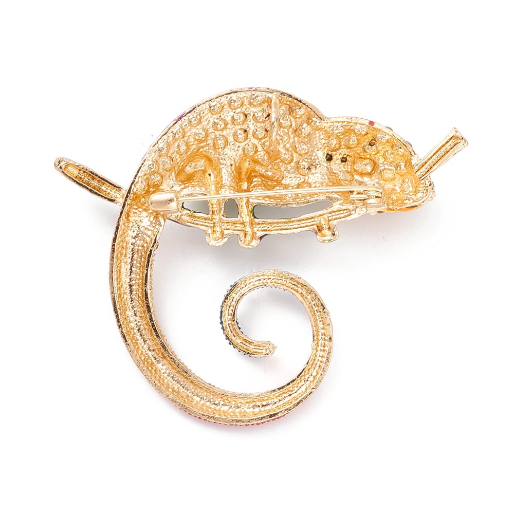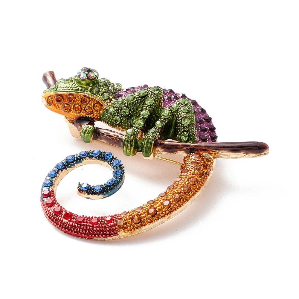 Εντυπωσιακή καρφίτσα χαμαιλέοντας από κράμα μετάλλου με πολύχρωμο σμάλτο και λαμπερά στρας. Ιδανική για παλτό, σακάκια, τσάντες και statement εμφανίσεις.