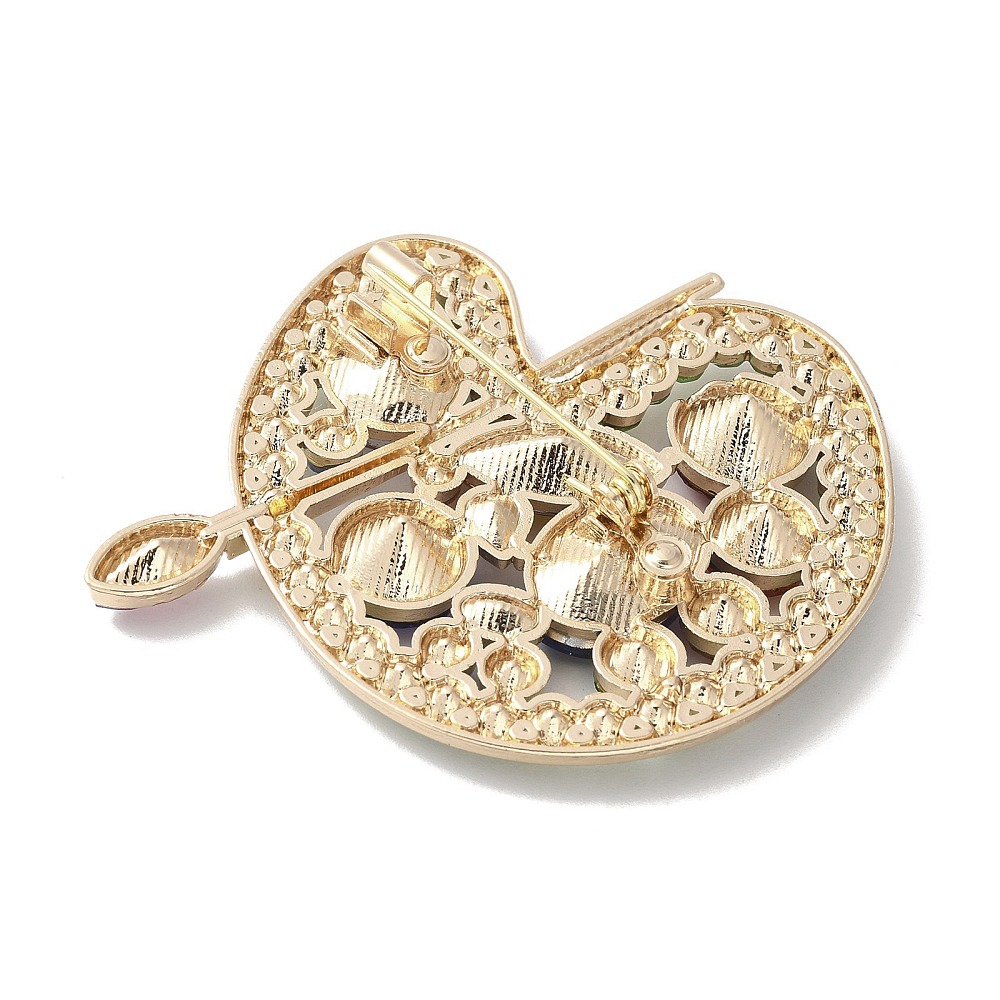 Εντυπωσιακή καρφίτσα παλέτα ζωγραφικής από κράμα μετάλλου με πολύχρωμα στρας. Ιδανικό statement αξεσουάρ για ρούχα, παλτό, σακάκια και τσάντες με καλλιτεχνικό χαρακτήρα.