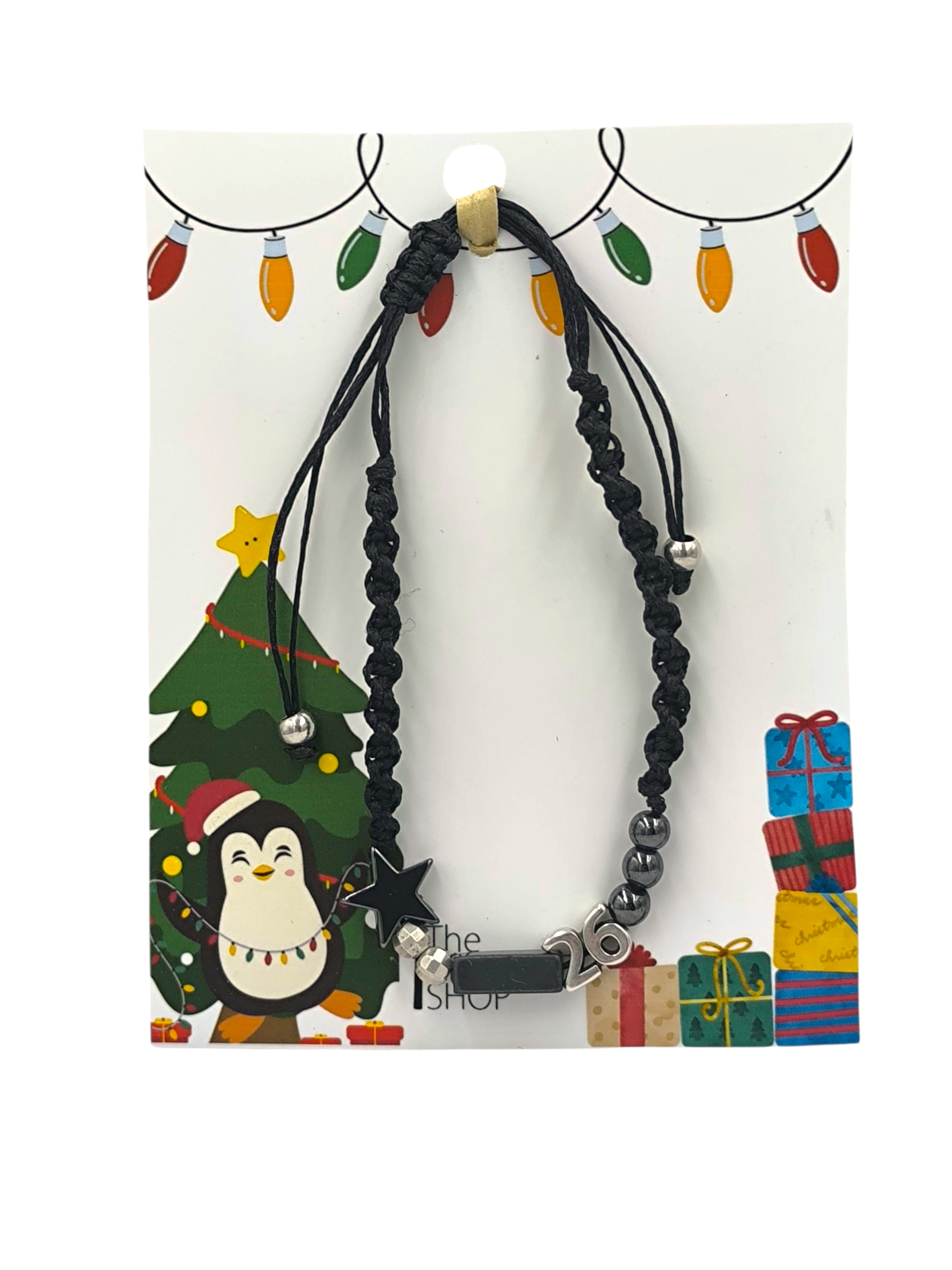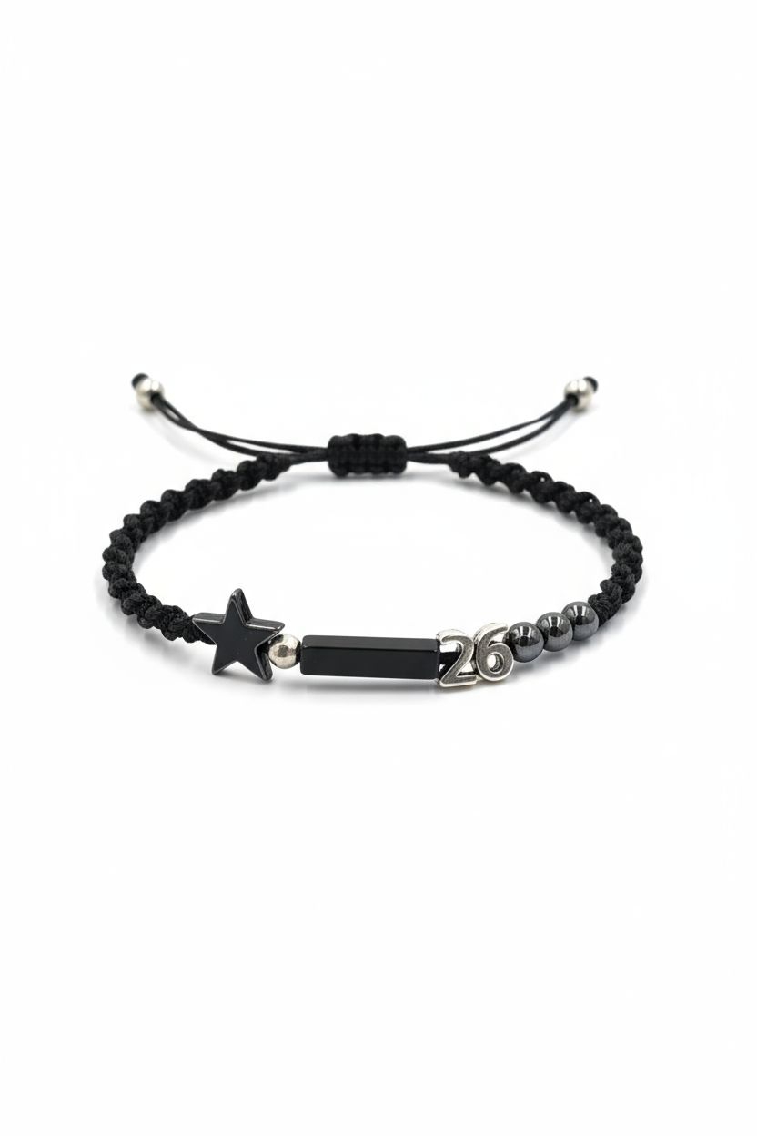 Minimal και διακριτικό βραχιολάκι γούρι με τος έτος 26 και χάντρες από αιματίτη