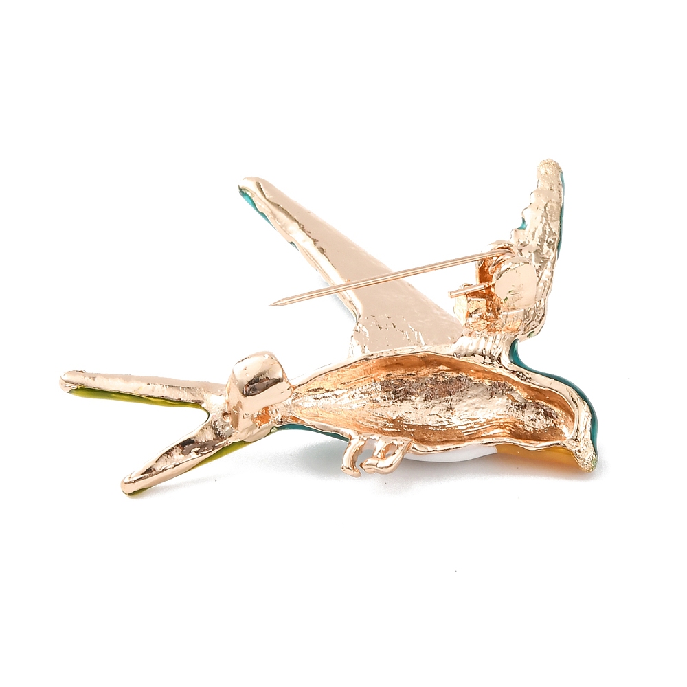 Κομψή καρφίτσα χελιδόνι από κράμα μετάλλου με πολύχρωμο σμάλτο και χρυσή βάση. Ιδανική για παλτό, σακάκια, ρούχα και τσάντες, προσθέτοντας χρώμα και κίνηση σε κάθε εμφάνιση.