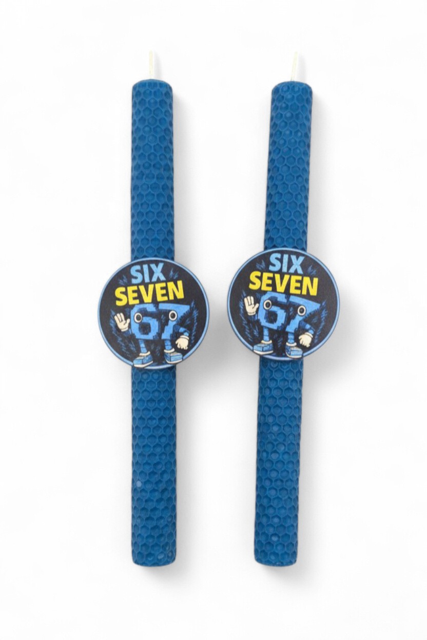Πασχαλινή λαμπάδα Six Seven από φυσικό μελισσοκέρι, με ξύλινο στοιχείο. Δημοφιλής επιλογή στα παιδιά και ποιοτική, ασφαλής λύση για γονείς.