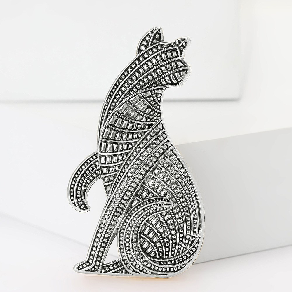Κομψή καρφίτσα περσική γάτα από κράμα μετάλλου σε αντικέ ασημί φινίρισμα. Ιδανικό statement αξεσουάρ για παλτό, σακάκια και τσάντες με vintage χαρακτήρα.