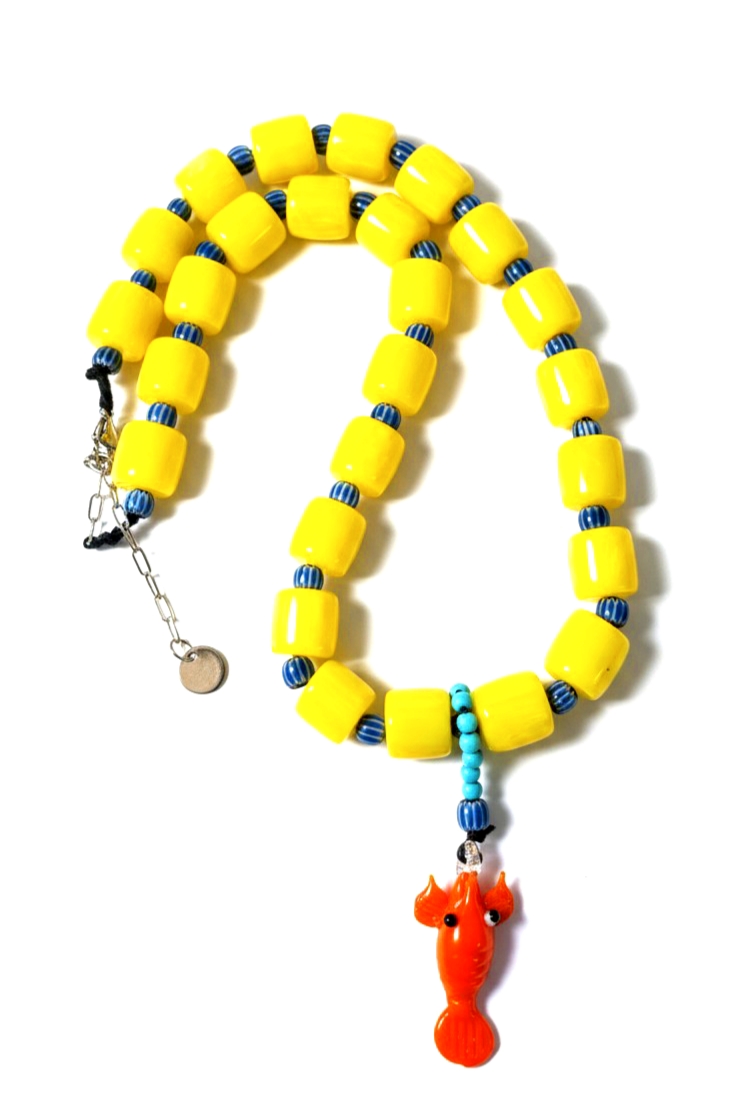 Φωτεινό κίτρινο κολιέ με χάντρες ρητίνης και αστακό τύπου Murano για καλοκαιρινό στυλ.